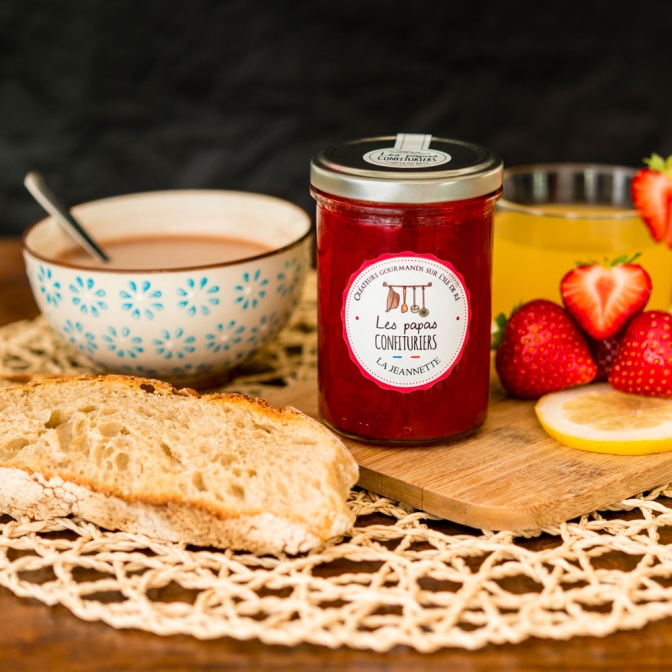 Le double effet Jeannette : d’abord la fraise, douce et longue en bouche, puis c’est l’explosion de saveur du yuzu, un goût subtil entre le citron vert, la mandarine et le pamplemousse.