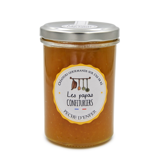 Pêche, sucre, jus de citron, romarin, gélifiant (pectine)