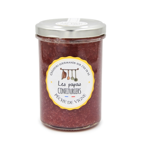 Pêche de vigne, sucre, jus de citron, gélifiant (pectine)