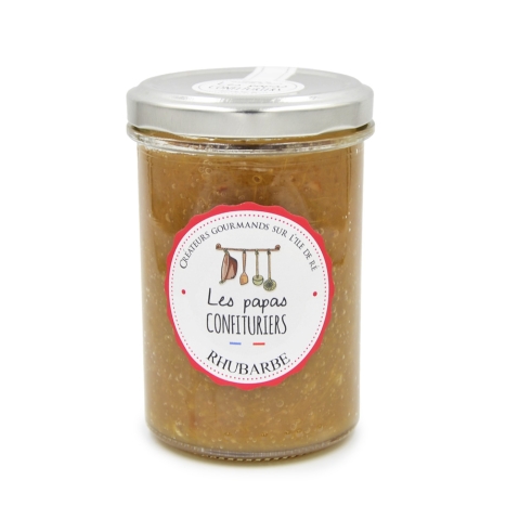 Rhubarbe, sucre, jus de citron, gélifiant (pectine)